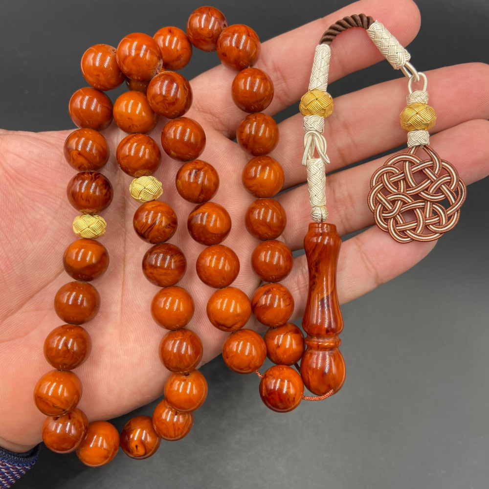 سبحة من خام البكلايت البلجيكي المعالج ، مشغولة بالفضة الفاخرة