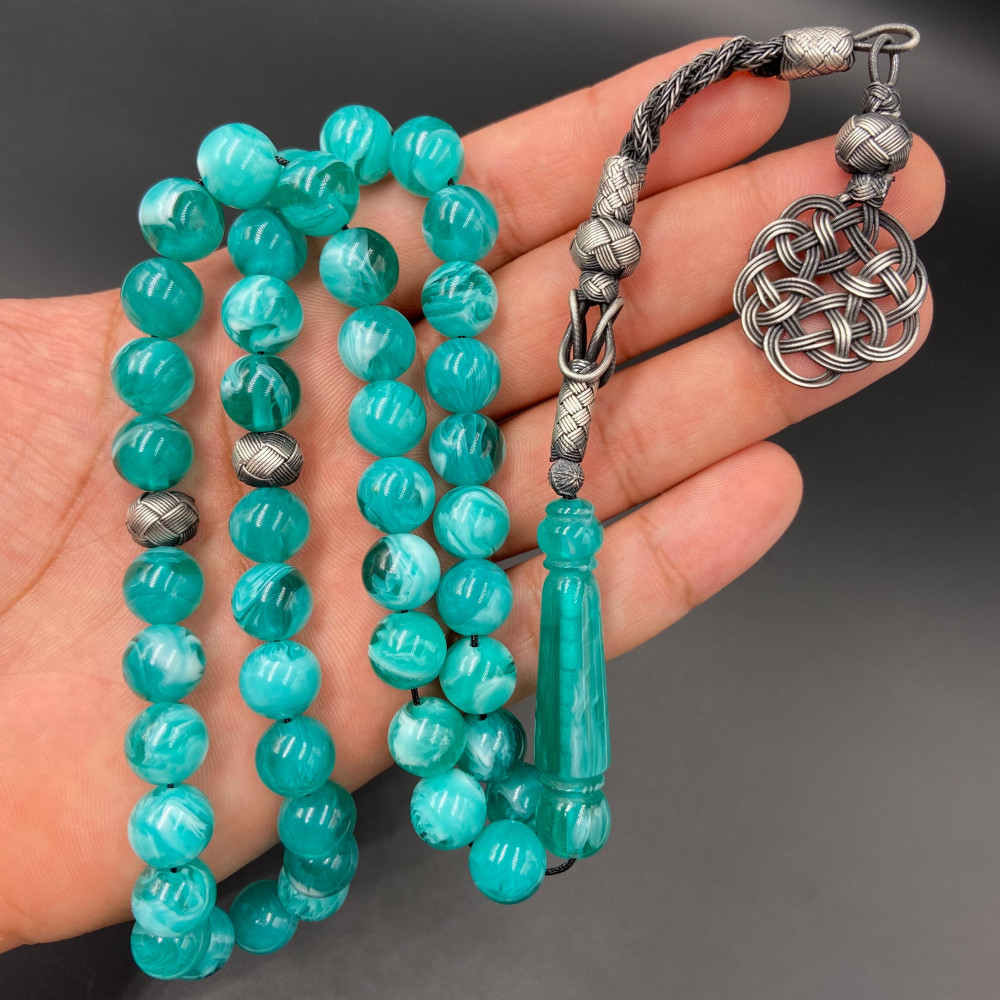 سبحة من خام البكلايت البلجيكي المعالج ، مشغولة بالفضة الفاخرة