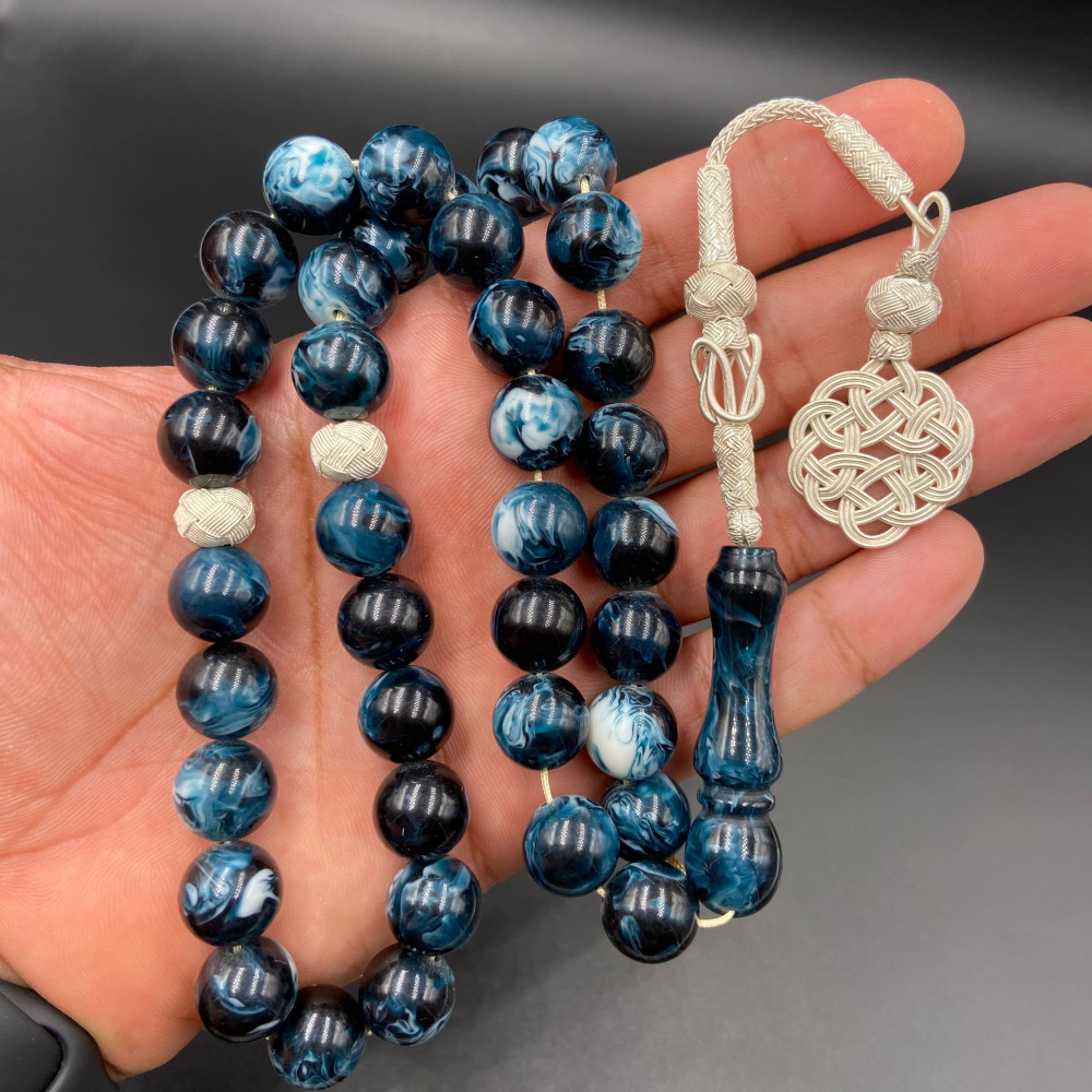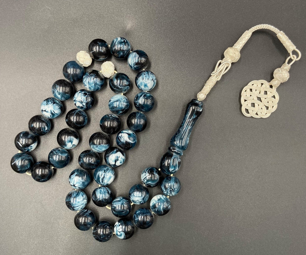 سبحة من خام البكلايت البلجيكي المعالج ، مشغولة بالفضة الفاخرة