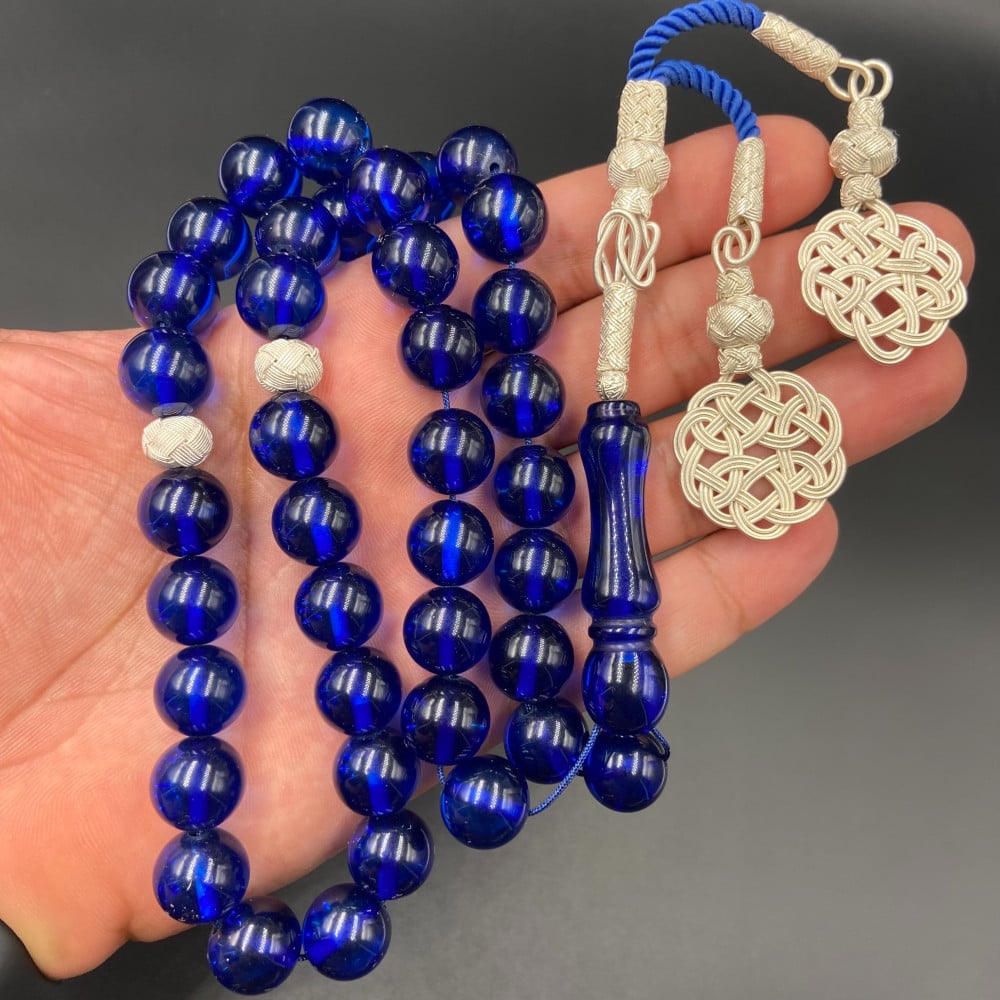 سبحة من خام البكلايت البلجيكي المعالج ، مشغولة بالفضة الفاخرة