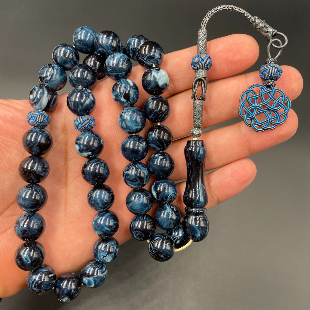 سبحة من خام البكلايت البلجيكي المعالج ، مشغولة بالفضة الفاخرة