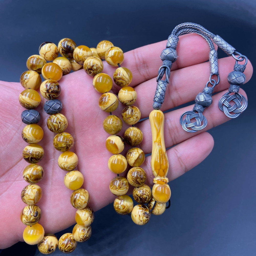 سبحة من خام البكلايت البلجيكي المعالج ، مشغولة بالفضة الفاخرة