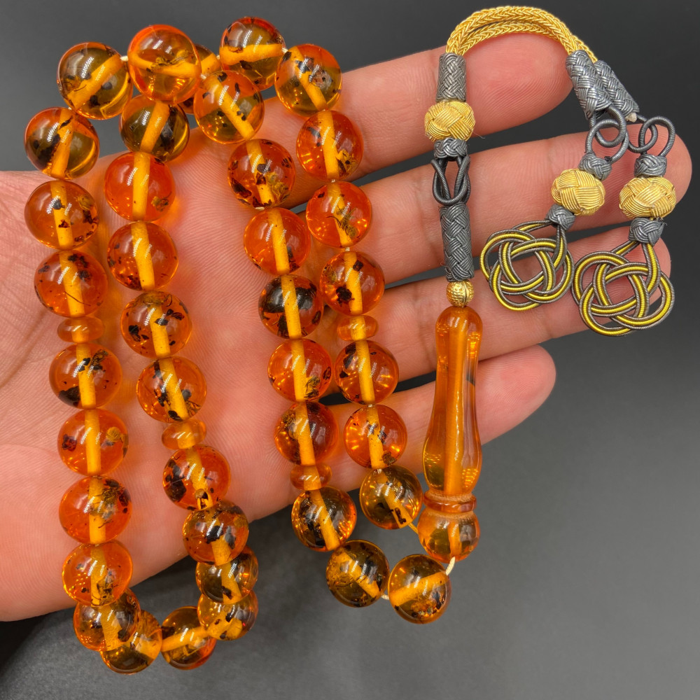 سبحة من خام البكلايت البلجيكي المعالج ، مشغولة بالفضة الفاخرة