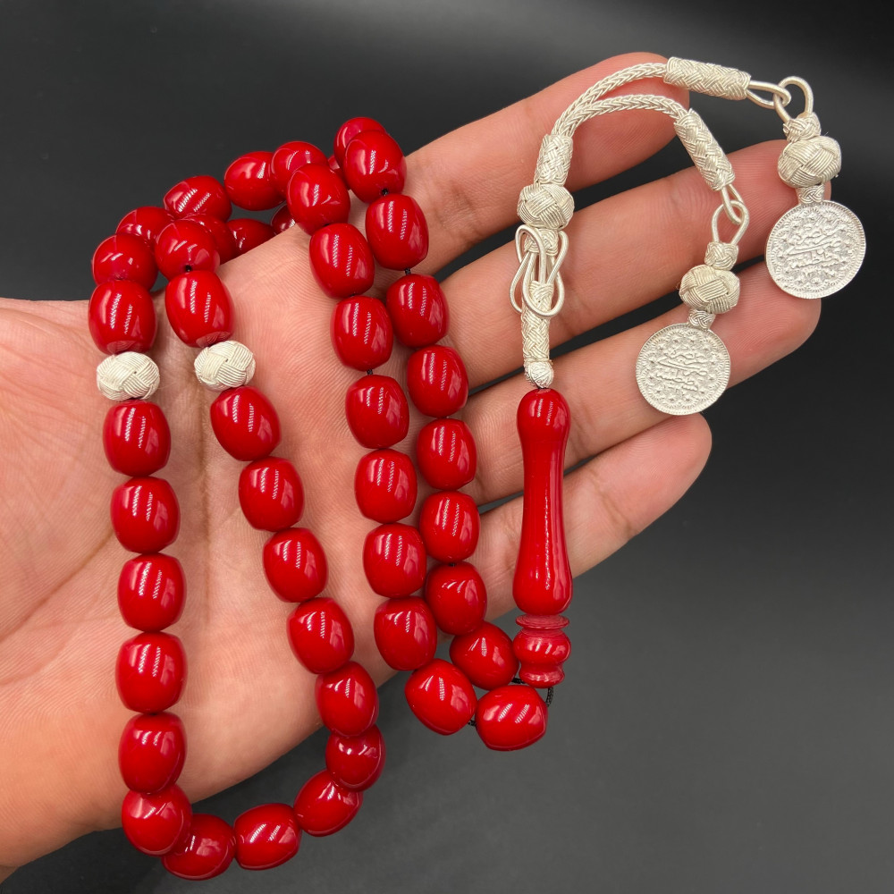 سبحة من خام البكلايت البلجيكي المعالج ، مشغولة بالفضة الفاخرة