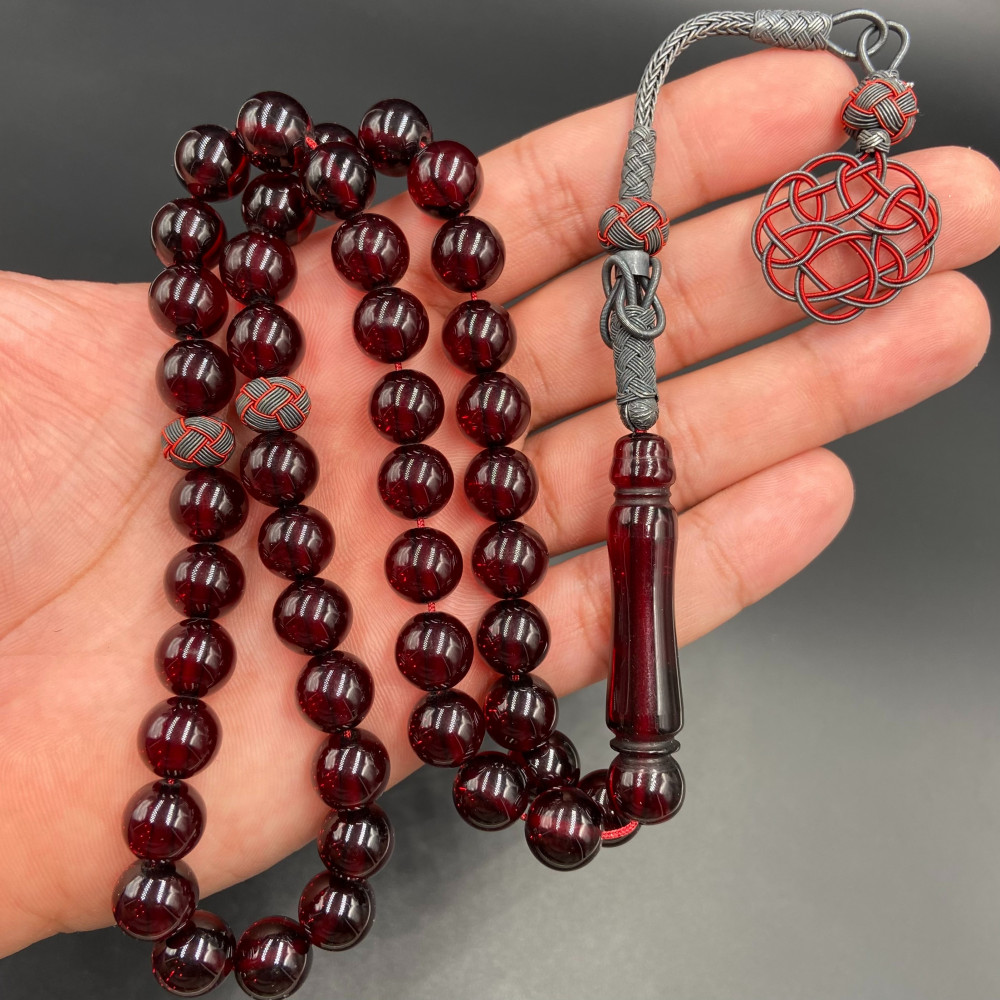 سبحة من خام البكلايت البلجيكي المعالج ، مشغولة بالفضة الفاخرة