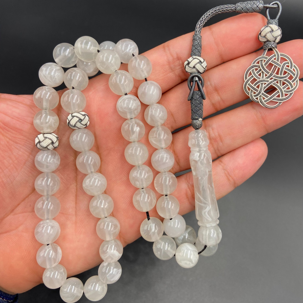 سبحة من خام البكلايت البلجيكي المعالج ، مشغولة بالفضة الفاخرة