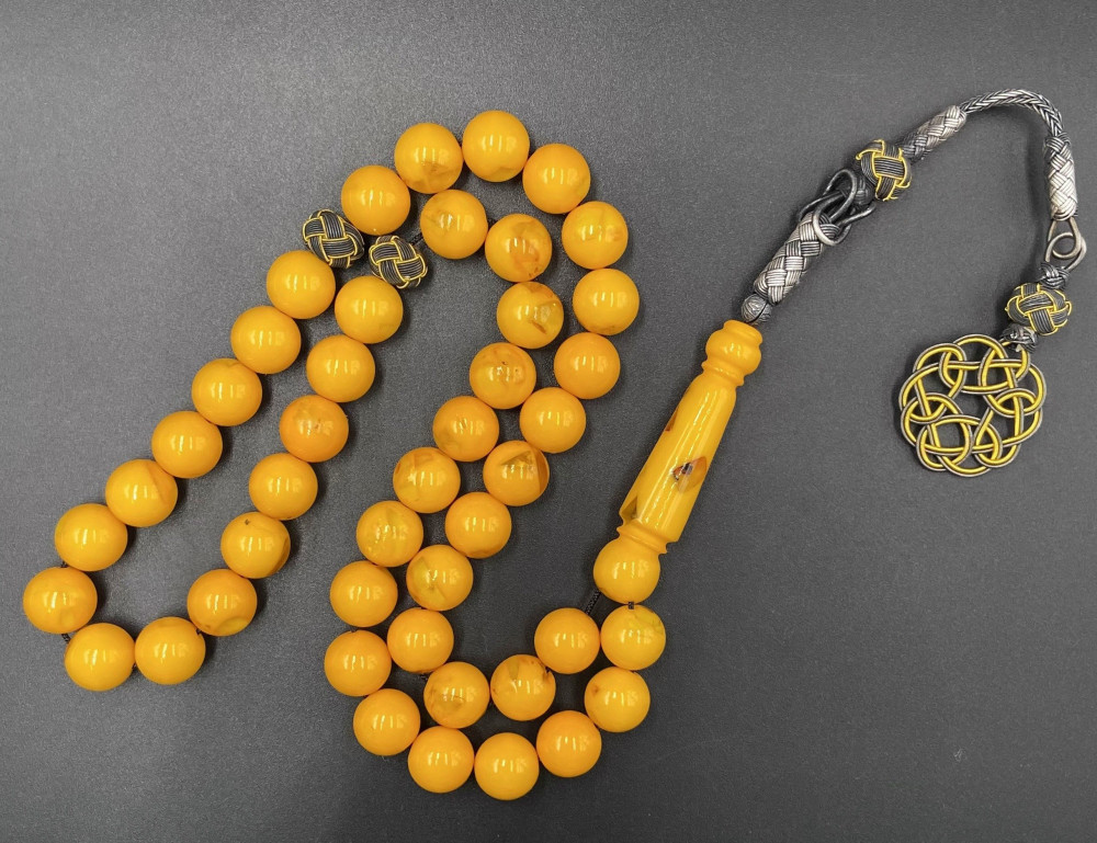 سبحة من خام البكلايت البلجيكي المعالج ، مشغولة بالفضة الفاخرة