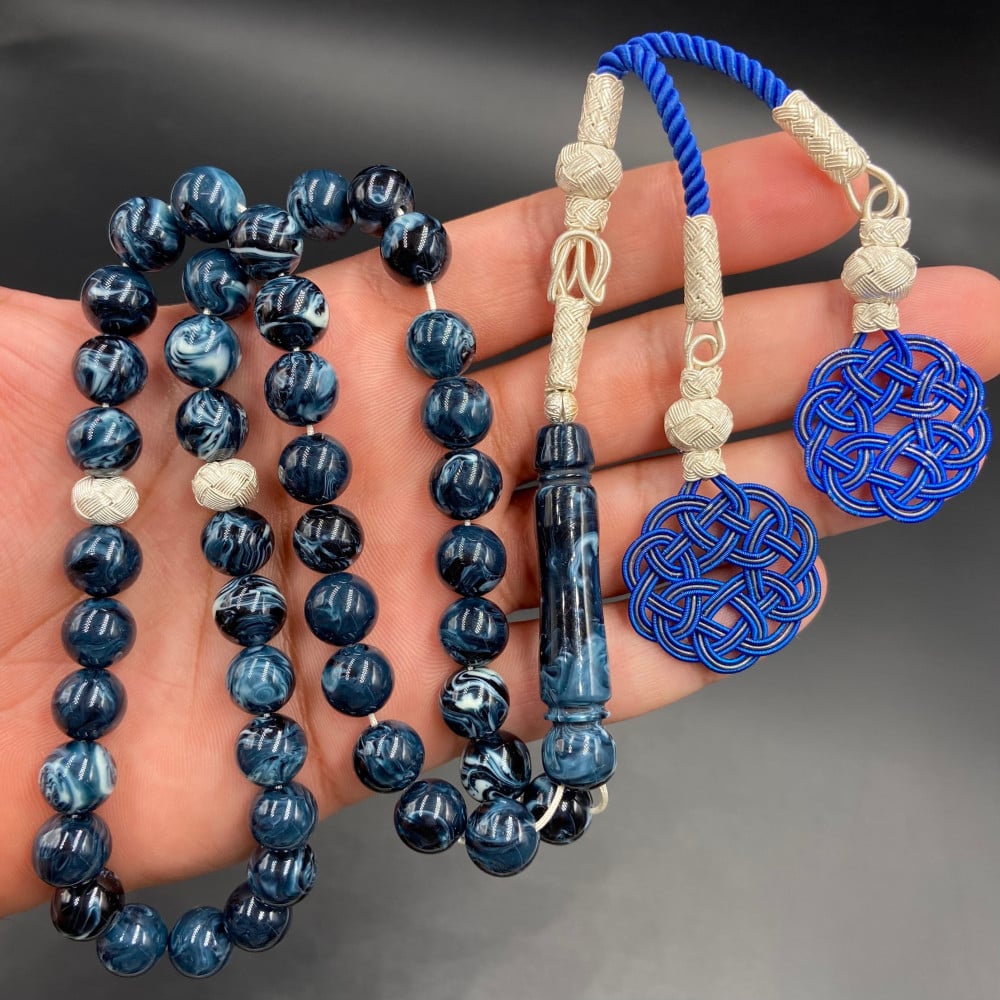 سبحة من خام البكلايت البلجيكي المعالج ، مشغولة بالفضة الفاخرة