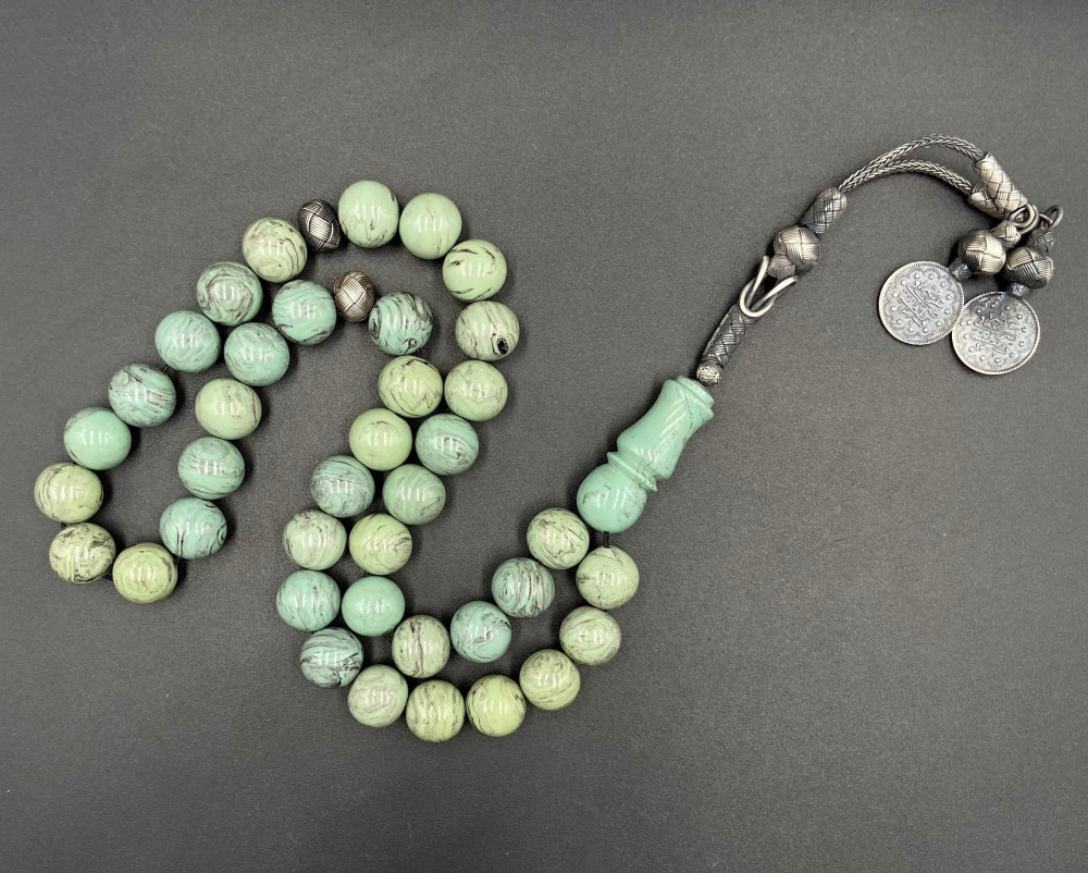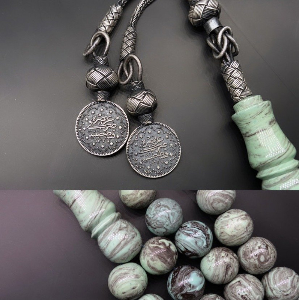 سبحة من خام الفاتوران الفاخر المعالج ، مشغولة بالفضة الفاخرة