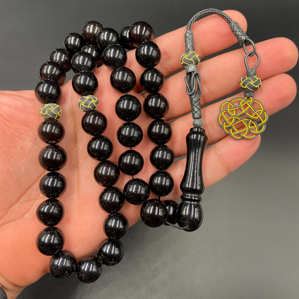 سبحة من خام البكلايت البلجيكي المعالج ، مشغولة بالفضة الفاخرة