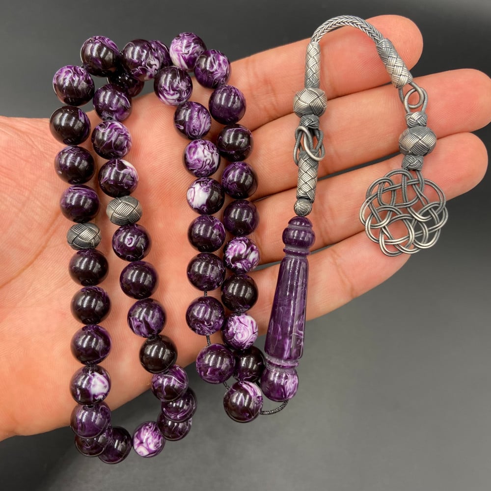 سبحة من خام البكلايت البلجيكي ، مشغولة بالفضة الفاخرة