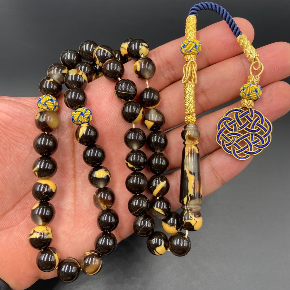 سبحة من خام البكلايت البلجيكي المعالج ، مشغولة بالفضة الفاخرة