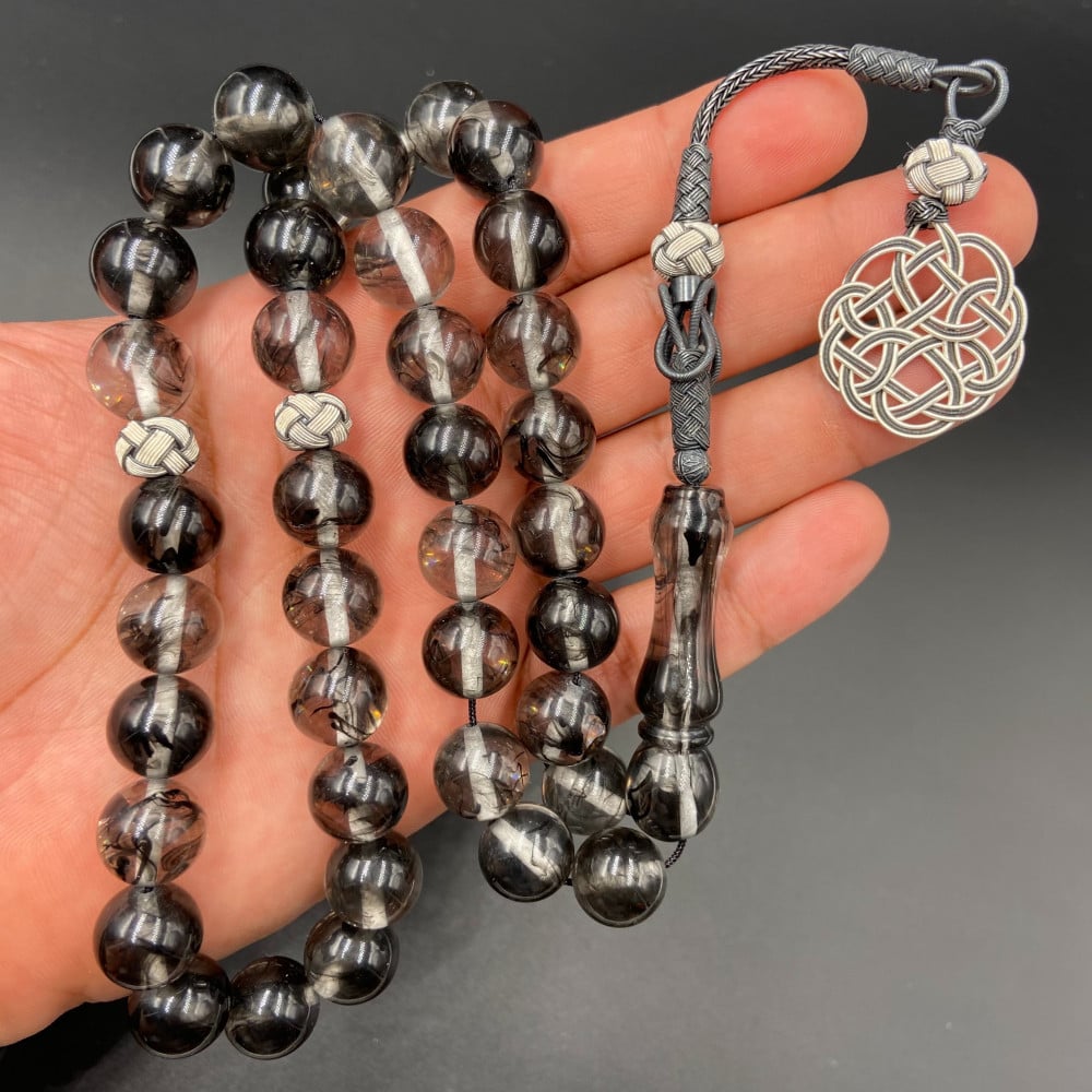 سبحة من خام البكلايت البلجيكي المعالج ، مشغولة بالفضة الفاخرة