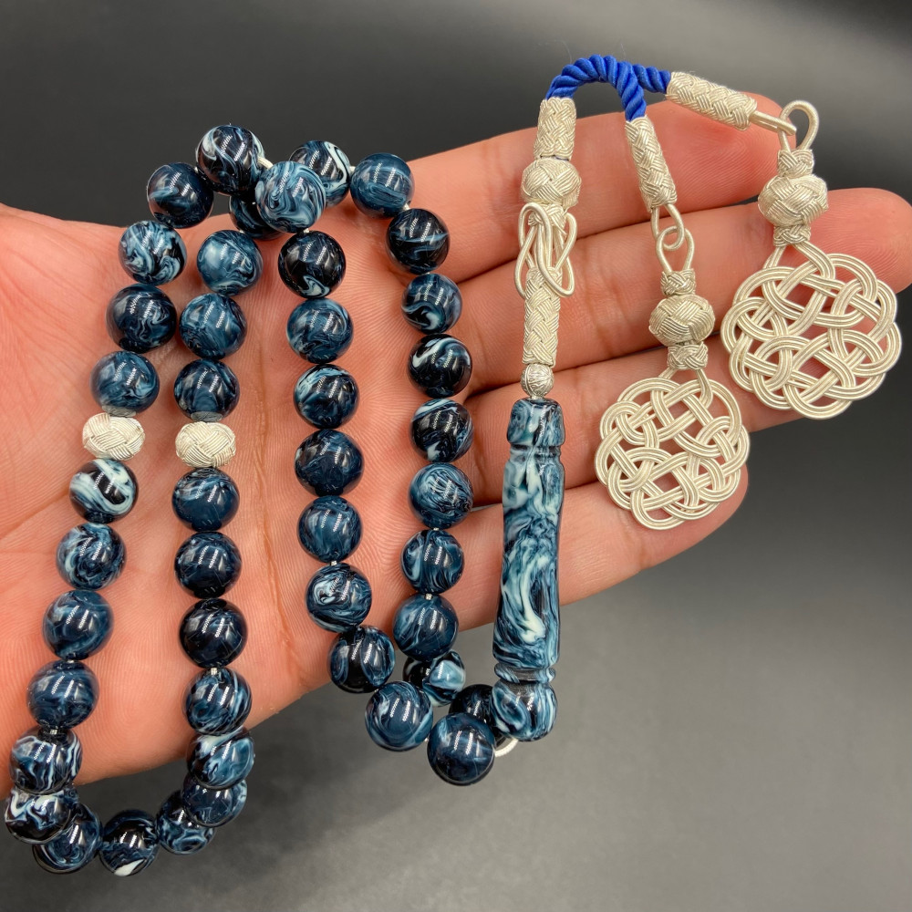 سبحة من خام البكلايت البلجيكي المعالج ، مشغولة بالفضة الفاخرة