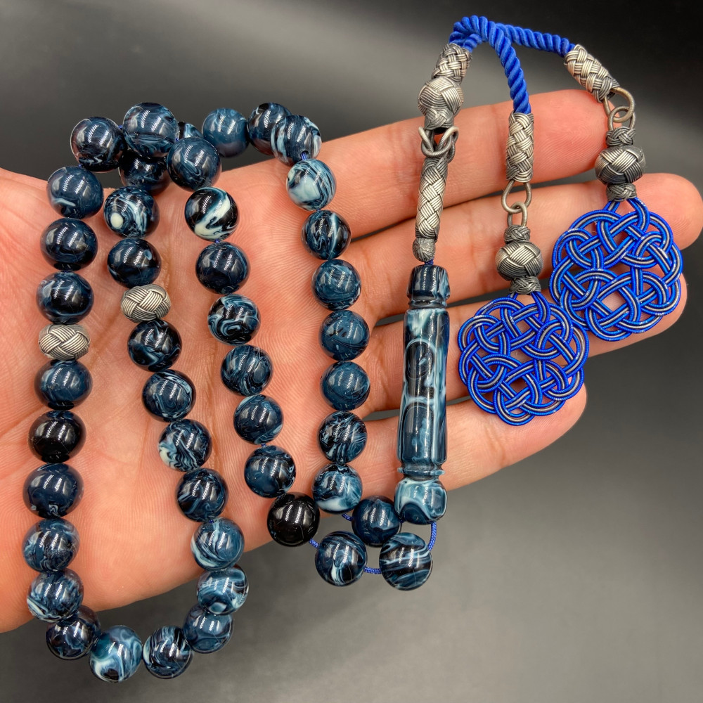 سبحة من خام البكلايت البلجيكي المعالج ، مشغولة بالفضة الفاخرة