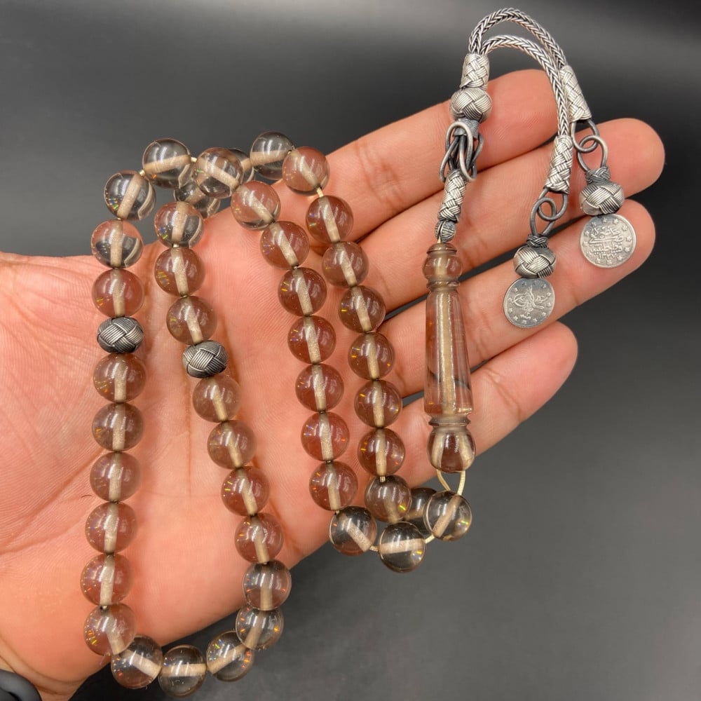 سبحة من خام البكلايت البلجيكي المعالج ، مشغولة بالفضة الفاخرة