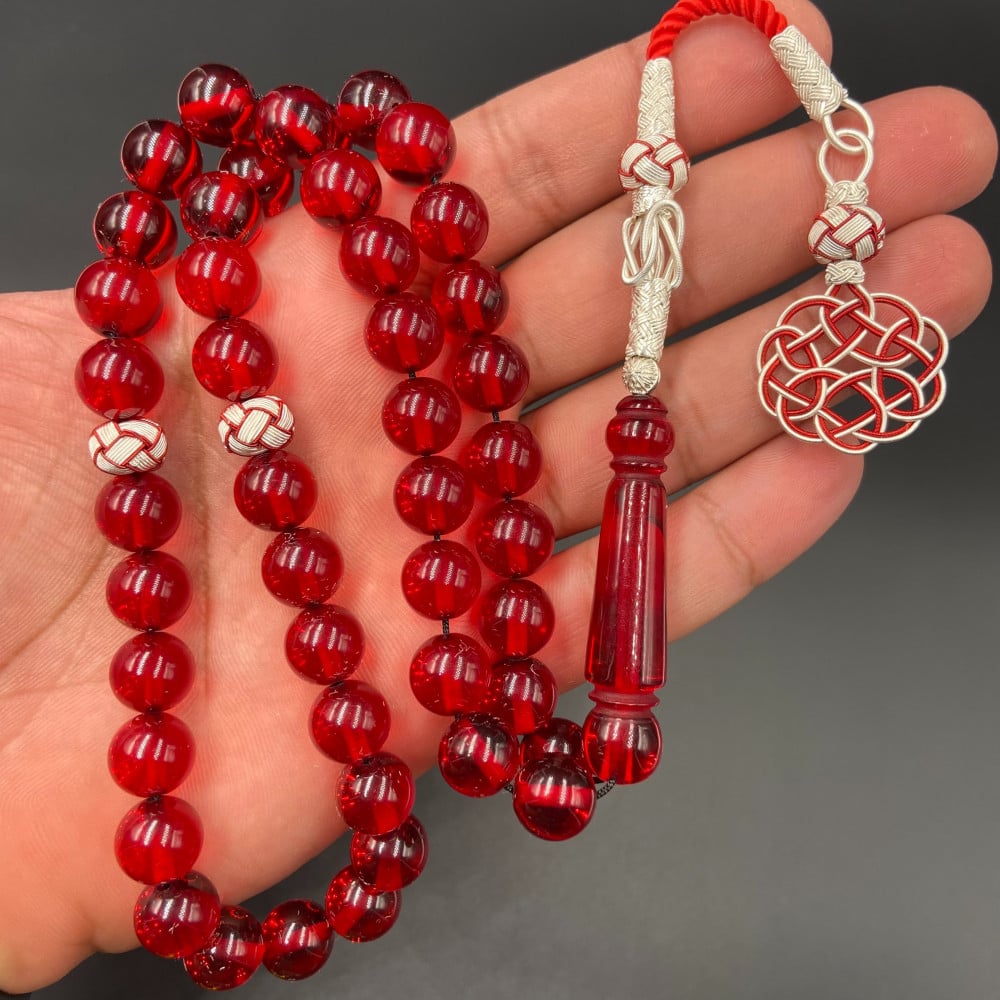 سبحة من خام البكلايت البلجيكي المعالج ، مشغولة بالفضة الفاخرة