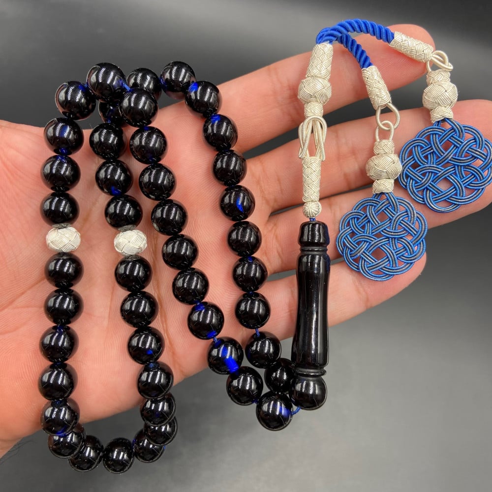 سبحة من خام البكلايت البلجيكي المعالج ، مشغولة بالفضة الفاخرة