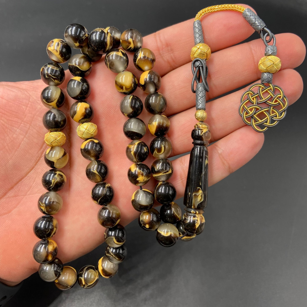 سبحة من خام البكلايت البلجيكي المعالج ، مشغولة بالفضة الفاخرة