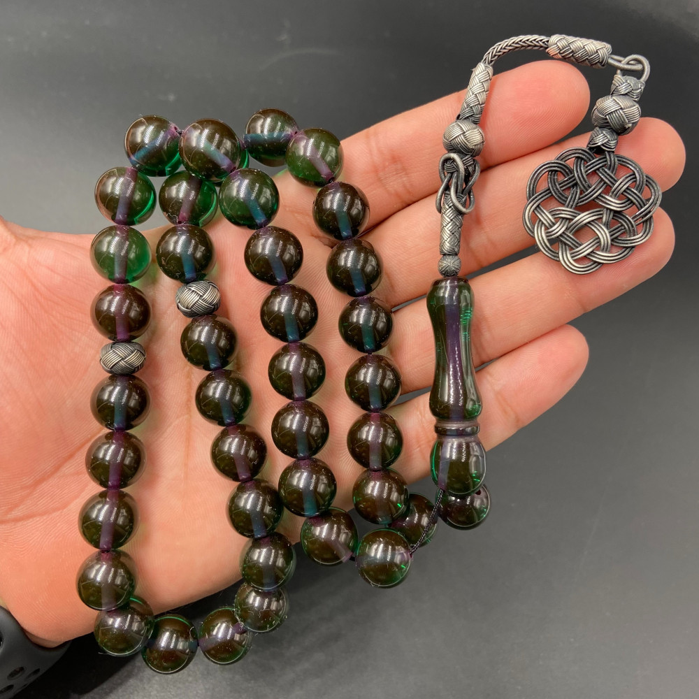 سبحة من خام البكلايت البلجيكي المعالج ، مشغولة بالفضة الفاخرة