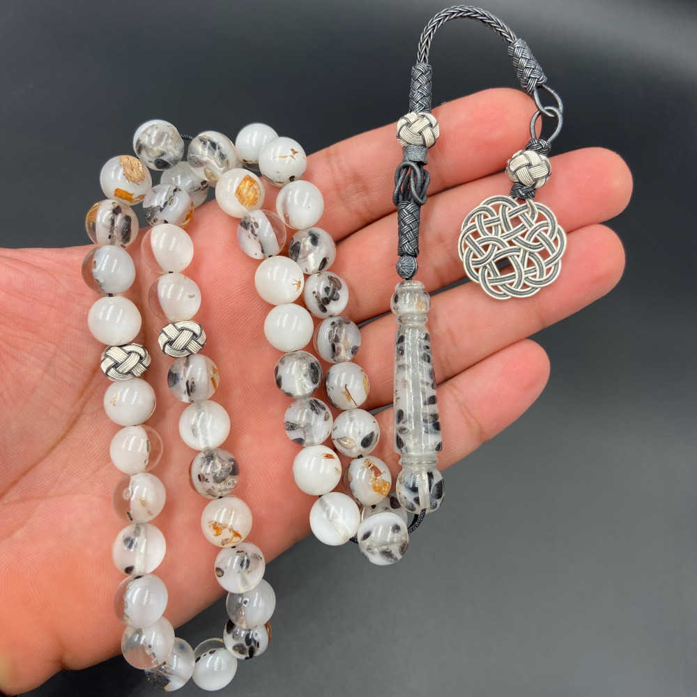 سبحة من خام البكلايت البلجيكي المعالج ، مشغولة بالفضة الفاخرة