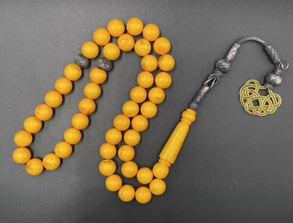 سبحة من خام البكلايت البلجيكي المعالج ، مشغولة بالفضة الفاخرة