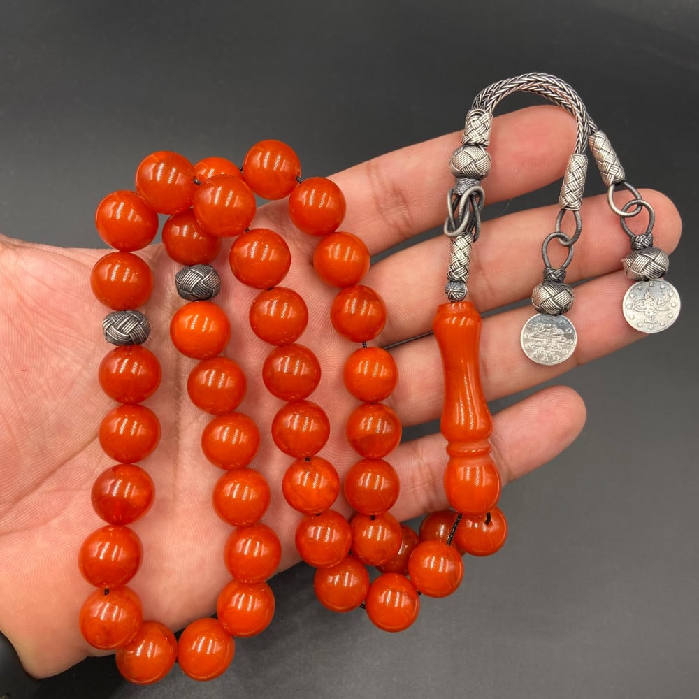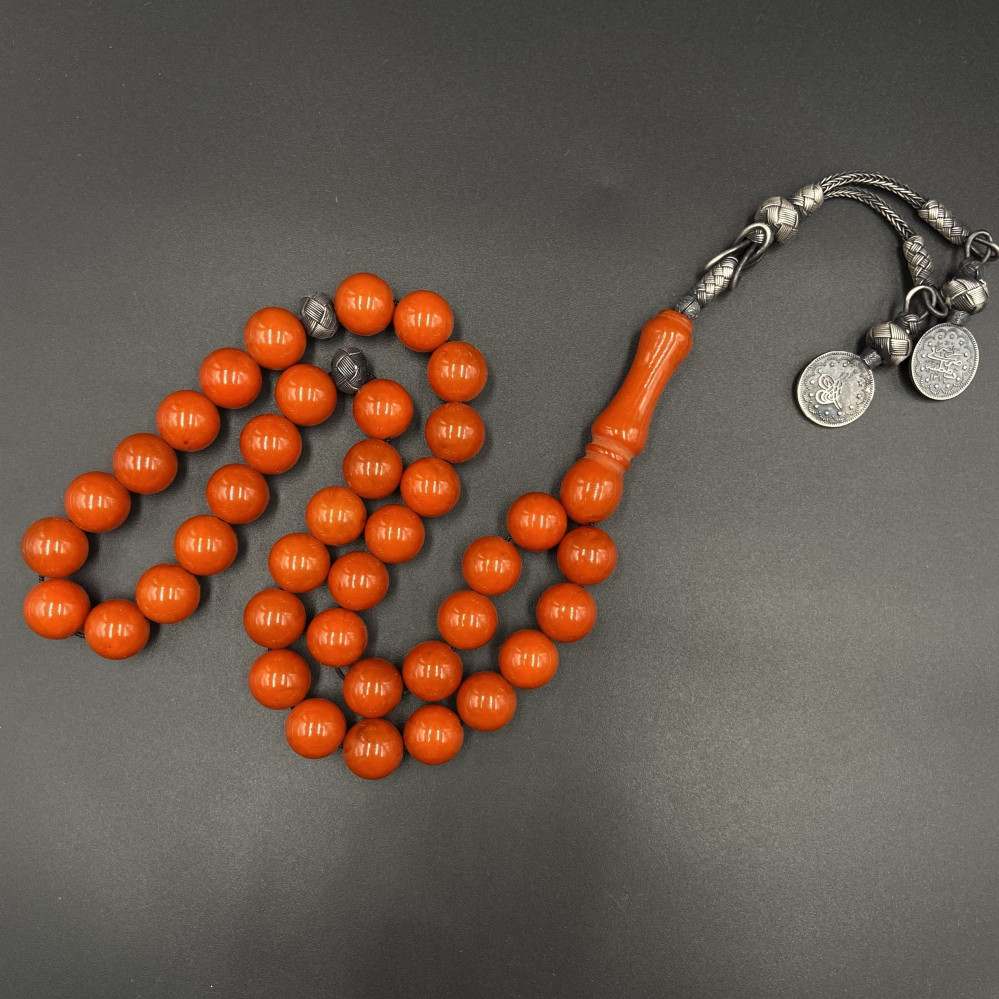 سبحة من خام البكلايت البلجيكي المعالج ، مشغولة بالفضة الفاخرة